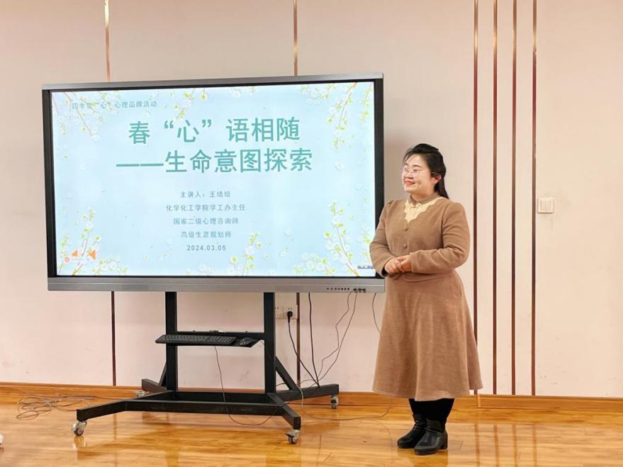 为进一步加强我校心理健康教育工作针对性和有效性,积极营造和谐温馨的校园文化氛围,着力提升大学生心理健康素养。3月5日,学校依托化学化工学院“四季常‘心’”心理育人工作室于“一站式”学生社区学生事务与发展中心二楼启智堂举办了心理品牌活动——春“心”语相随团体心理辅导。本次活动由国家二级心理咨询师、化学化工学院辅导员王培培带领。