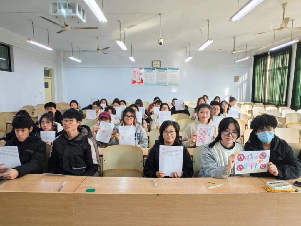 活动中,通过观看安全科普视频,向学生讲解生活中常见物质所含有的化学成分和反应原理,同时,重点讲解毒品、有毒物质、危险物品的化学成分、危害,及如何避免或远离等相关内容,引导学生正确运用化学知识,并且邀请同学们对所讲内容进行感悟与思考。同学们畅所欲言,分享自己的所感所想。