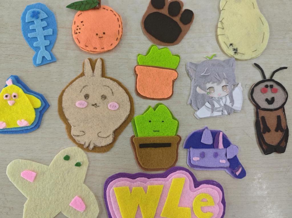 活动伊始,社团负责人通过视频演示与实物展示,讲解不织布材料的环保特性、裁剪技巧及立体缝合方法。从零钱包、书签到卡通挂饰,多样的作品范例激发了参与者的创作热情。随后,成员们领取环保不织布材料包,结合个人构思自由创作,有人将动物卡通融入构思创作,有人选择创作绿色植物作品。创作环节结束后,各组代表展示回收布料改造案例,并结合“手工艺疗愈”“环保与美学的共生”等话题展开分享,许多参与者表示,在专注创作的过程中,他们暂时忘却了学业的压力与生活的烦恼,找到了内心的平静与满足。这种沉浸式的创作体验,无疑为他们的心灵提供了一次难得的疗愈机会。