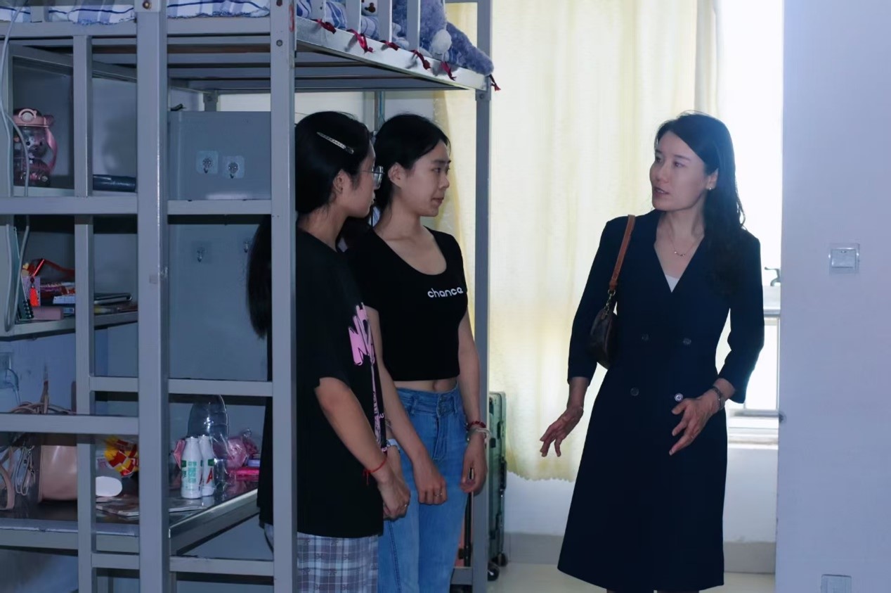 走访中,学院领导和老师们认真倾听新生报到感受,耐心解答学生在课程和生活服务等方面的问题,鼓励新生适应新环境、积极参与校园活动。学院领导格外关注新生入学初期的心理状态,反复叮嘱同学们:“遇到困惑别着急,及时和老师、同学沟通,咱们在互助互爱中一起成长。”同时,围绕用电安全、消防安全、财产安全三大核心,逐一提醒同学们时刻绷紧“安全弦”,既要提高安全防范意识,也要熟练掌握基础安全知识与应急自救技能。