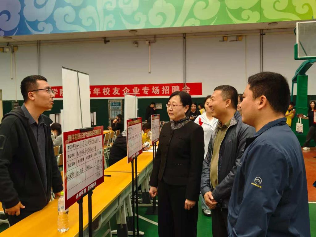 本次招聘会吸引了山东恒东生物科技有限公司、信诺立兴(黄骅市)集团股份有限公司等100余家单位参会,来自化工、材料等多个领域的校友企业带来丰富的岗位资源,涵盖研发、生产、技术、管理等多个类别,满足了不同专业学生的就业需求。毕业生手持简历,主动了朱训焜、侯佳慧解企业发展历程、岗位要求、薪资待遇、晋升空间等信息,积极与企业招聘人员沟通交流。校友企业向毕业生介绍企业概况与招聘需求,耐心解答同学们的疑问学院院长、党委副书记、毕业班辅导员校友企业代表深入交流,了解行业人才需求和企业发展趋势,共商校企协同育人新路径。
