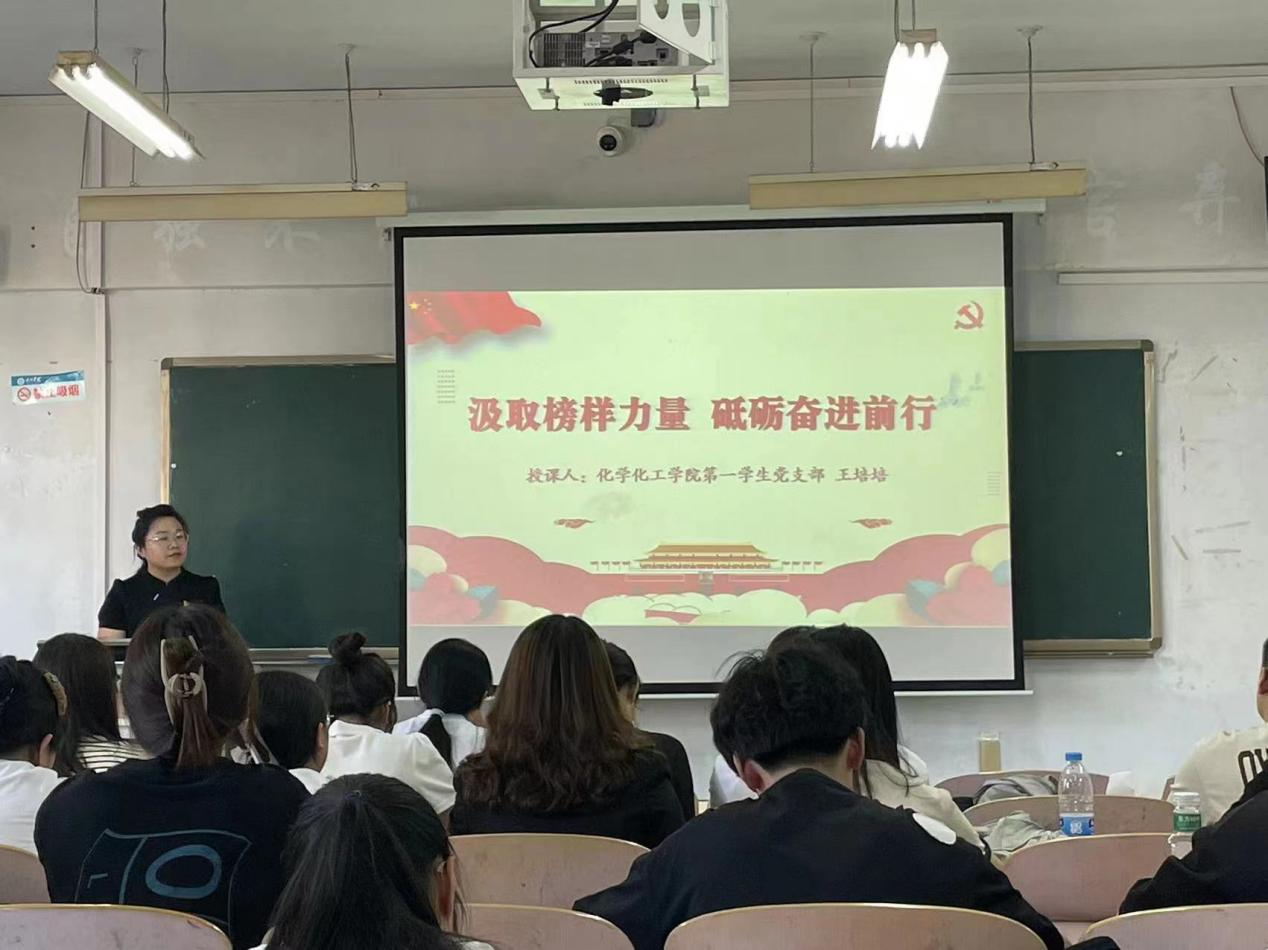 为深入开展学习贯彻习近平新时代中国特色社会主义思想主题教育,进一步引导毕业生党员坚定理想信念,提高党性修养,化学化工学院于6月13日在求实楼开展“汲取榜样力量 砥砺奋进前行”主题教育专题党课。本次党课由第一学生党支部书记主讲,第一学生党支部毕业生党员参加。