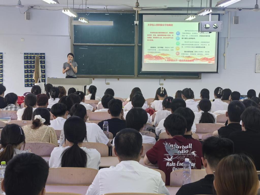 学院党委书记以“坚定理想信念,端正入党动机,做遵规守纪的新时代大学生”为题讲授开班第一课。党课紧扣培养合格建设者和可靠接班人目标。党委书记首先深刻阐明了坚定理想信念作为共产党人精神支柱的极端重要性,结合党的奋斗历程和先进事迹阐明其对人生航向的决定性作用。其次,她重点剖析了端正入党动机的思想基础地位,强调纯洁动机必须建立在对党的纪律规矩深刻认同和自觉遵守之上,并联系中央八项规定精神及反面案例,警示学员反躬自省,深刻理解严明纪律是党的生命线和个人成长的保障。最后,她明确指出,自觉践行遵规守纪是新时代合格大学生的基本素养和必然要求,是理想信念与端正动机的行为体现。
