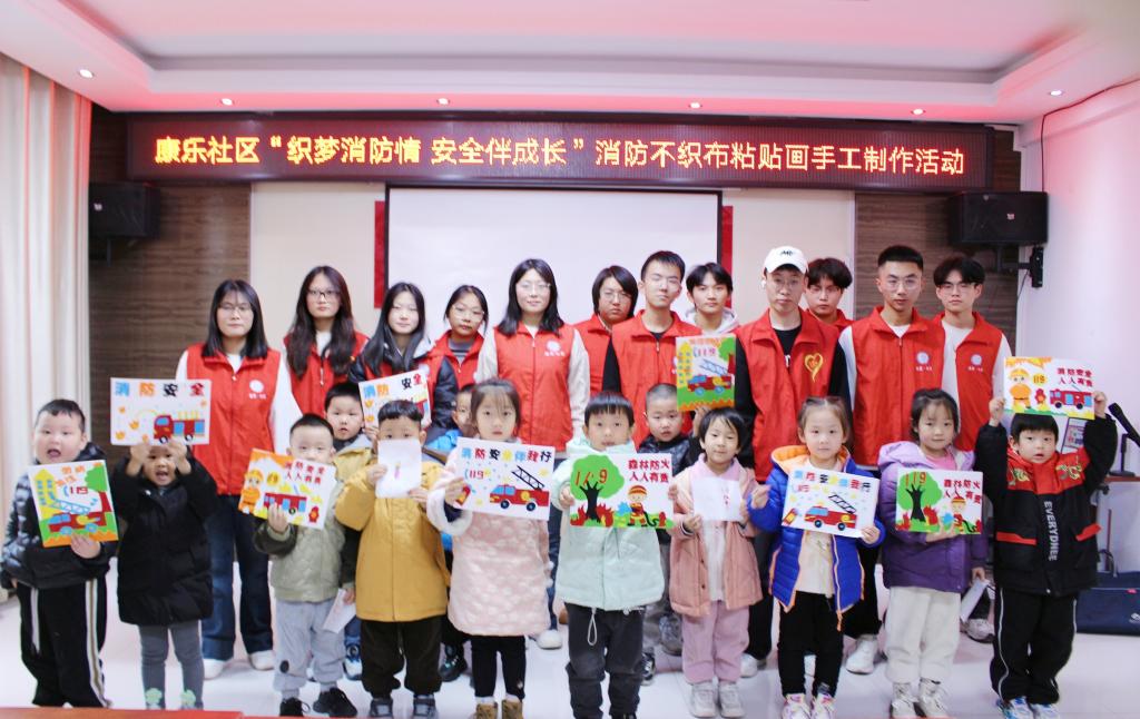 为提高社区小朋友的消防安全意识,强化防火和疏散逃生技能,提高其自防自救能力。化学化工学院于11月26日在康乐社区开展“织梦消防情,安全伴成长”消防不织布粘贴画手工制作活动。