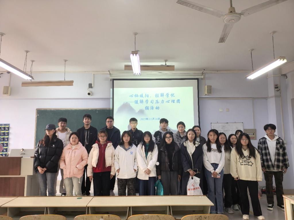 为缓解学生学业压力,以轻盈状态投入学习和生活,化学化工学院于11月16日组织开展“心栖暖阳,轻解学优”缓解学习压力心理团辅活动。学院47名学生踊跃参与,在轻松氛围中打开心灵“减压阀”。