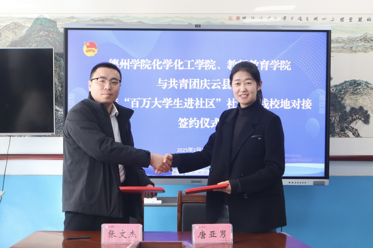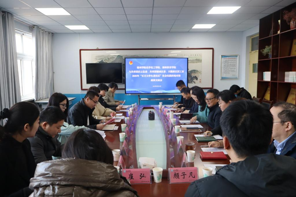 为深入推动校地资源共享、优势互补,助力大学生实践成长与地方经济社会发展,2025年2月23日,化学化工学院全国高校“双带头人”教师党支部书记“强国行”专项行动团队与共青团庆云县委开展2025年“百万大学生进社区”社会实践校地对接座谈会。庆云县团委主要负责同志、化学化工学院党政领导班子成员、专项行动团队部分成员参加会议。