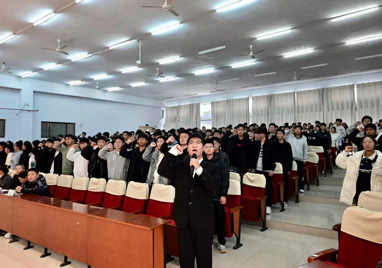 在集体宣誓环节,铿锵有力的誓言展现了全体新生对大学生活的热切期盼和坚定信念。
