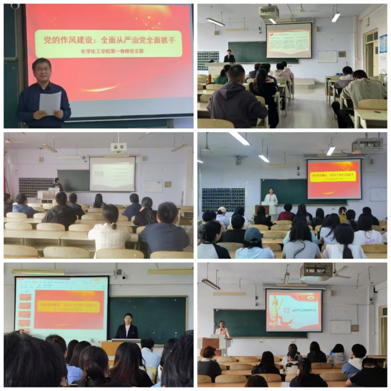为深入贯彻落实习近平总书记关于党的作风建设重要论述,推动全面从严治党向基层延伸,2025年4月15—23日,化学化工学院各党支部以“党的作风建设:全面从严治党全面抓手”为主题,组织全体师生党员开展专题党课学习。此次党课紧密结合中央八项规定精神,旨在引导党员干部深刻理解作风建设的重要性,以更高站位、更严标准践行新时代党员使命。
