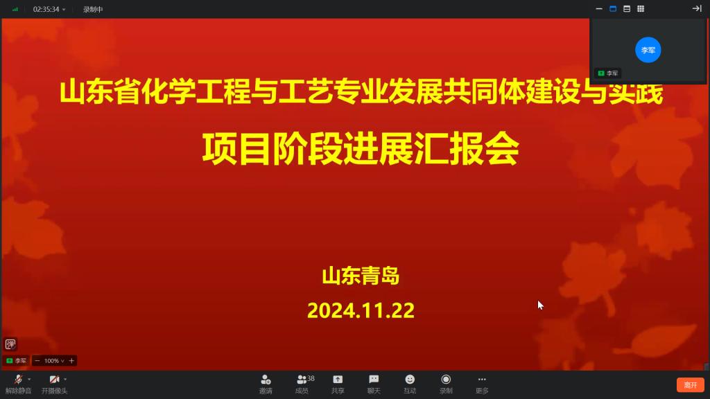 2024年11月22日,山东省化学工程与工艺专业发展共同体建设与实践(“111”计划)工作进展汇报会通过线上线下结合方式召开。我校化学化工学院分管人、化学工程与工艺专业负责人及骨干教师参加推进会。