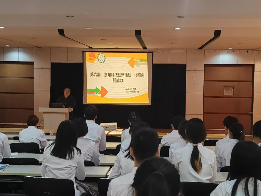 主讲人围绕大学生科技创新主题,从大学生科技创新活动概述、学生参与科技创新的主要流程、国内创新类赛事等方面做了讲解,鼓励青年学生培养自主创新意识,积极参加“中国国际大学生创新大赛”、“挑战杯”等创新赛事,发挥自主创新能力,成为新时代敢创新能创新的新青年,为祖国科技创新贡献青春才智。
