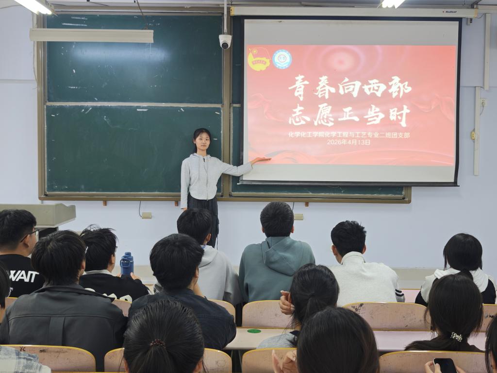 为引导青年学子服务国家战略、投身西部基层发展,4月13日至15日,化学化工学院在求实楼举办“青春向西部,志愿正当时”主题团日活动。学院全体团支部参加,各团支书主讲。