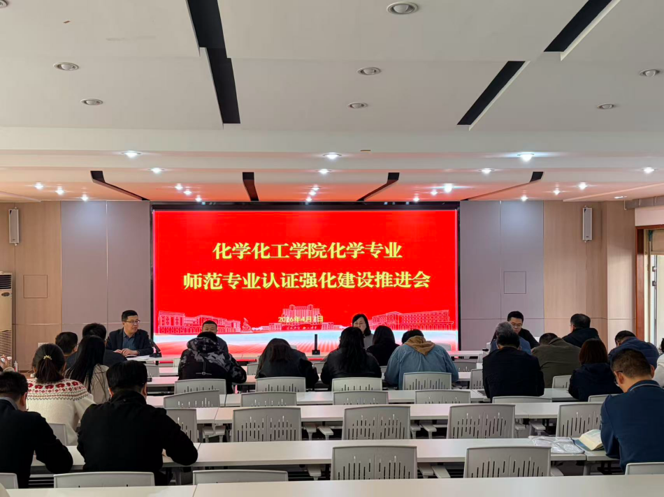 为进一步扎实推进化学师范专业认证的各项工作,确保认证目标的顺利达成,2026年4月7日下午,化学化工学院在求实楼0215召开化学师范专业认证强化建设推进会。学院领导班子成员及全体教师参加了会议。
