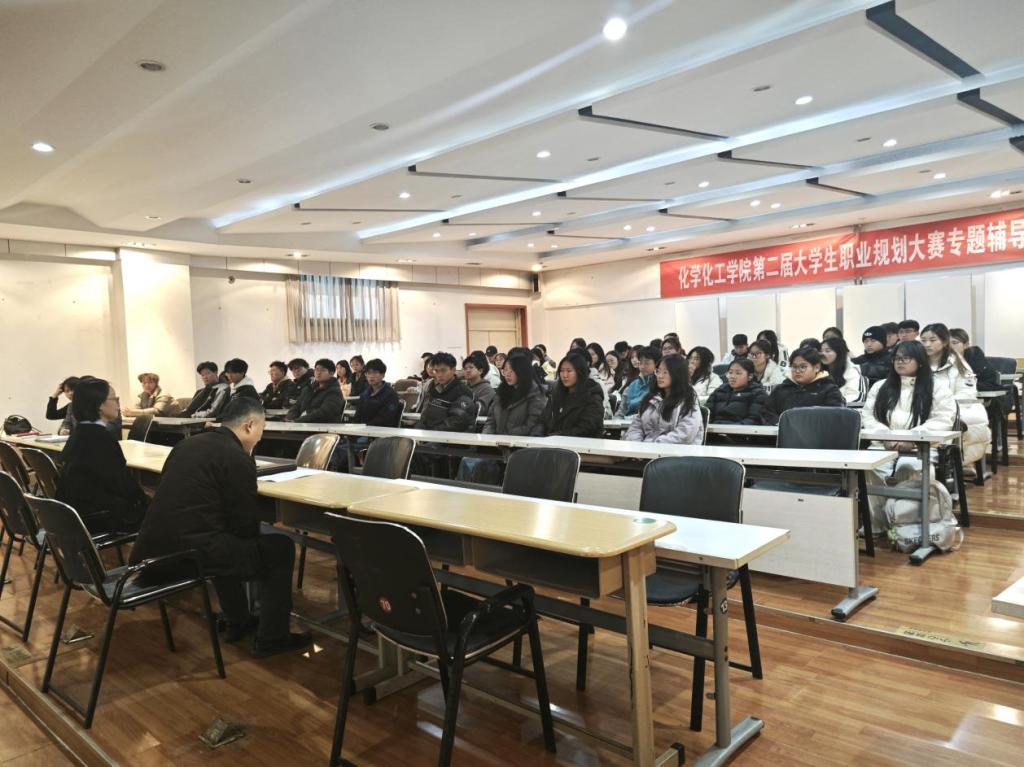 为进一步加强职业生涯教育和就业指导,助力学生备战第二届大学生职业规划大赛,12月4日,化学化工学院于求实楼215教室举办第二届大学生职业规划大赛专题辅导讲座。资深职业指导专家赵建平担任培训讲师,学院党委副书记、辅导员和本次院级职业规划大赛参赛选手参加。