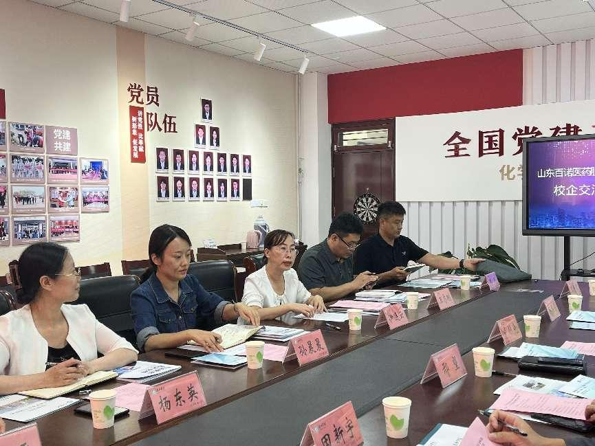 会上,化学化工学院党委书记对山东百诺医药股份有限公司的到来表示欢迎,对学院的学科专业、师资队伍、科研平台与团队、教学科研成果以及校企合作等方面的情况进行了介绍,表示在今后的工作中要继续加强校企合作,深入开展访企拓岗,促进校企双方共同发展。企业经理详细介绍了公司的基本情况,校企双方围绕学生实习、就业以及产学研合作等问题进行了深入交流。